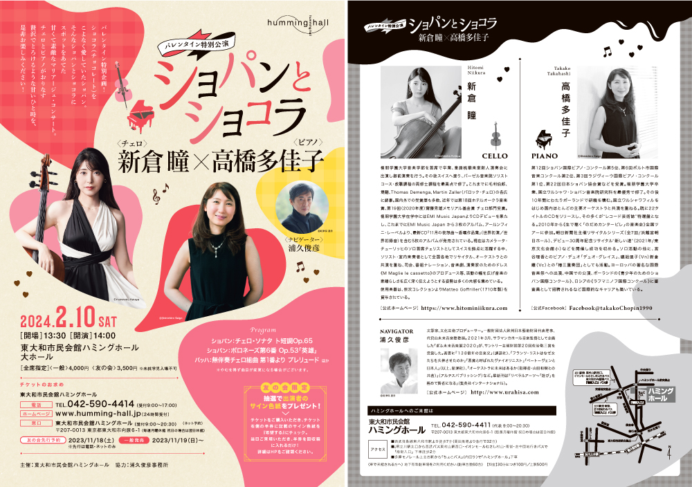 制作実績(印刷物) | 制作実績(その他) 守秘義務により公開できない実績が多数あります。詳しくはお問い合わせください。 2026 北海道セパタクローオープン選手権大会デザイン 2025 ビッセミュージックサロンチラシ/交洋不動産株式会社 2025 Wind Roots&東大和ウインドオーケストラジョイントコンサートチラシ 2025 hitaru劇評入門札幌文化芸術劇場 hitaru 提供 2024青年団 子ども参加型演劇「サンタクロース会議」札幌文化芸術劇場 hitaru 提供 2024北星学園大学心理学科 2024ショパンとショコラチラシ 2024大和芸術文化ホール共の会チラシ 2025鼓童×三宅島芸能同志会チラシ 2024北海道セパタクロー選手権大会ポスター 2024北海道セパタクローオープン選手権大会ポスター 2023大相撲北海道巡業関連デザイン一式 2023Adamホール体験コンサートチラシ 2023東京佼成ウィンドオーケストラファミリーコンサートチラシ 2023金子三勇士お茶クラシックチラシ 2019若林フェスティバルチラシ 2019立川談春独演会チラシ 2019イタリア交響楽団チラシ 2020北星学園大学福祉心理学科案内 2020北星学園大学英文学科案内 2020柳家喬太郎独演会チラシ なないろ接骨院様チラシ 2023北海道セパタクローオープン選手権大会ポスター 2018第22回北海道セパタクロー選手権大会ポスター・チラシ 2019第23回北海道セパタクロー選手権大会ポスター・チラシ